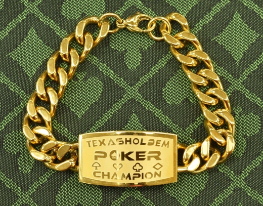 Whether you're a hardened casino pro, an online shark, or an amateur just learning the ropes, this poker bracelet is the perfect accessory to elevate your game. It's a badge of honor that says, "I'm a force to be reckoned with." The sleek design and premium materials used in its construction ensure a comfortable wear, allowing you to focus on what matters most – your next move. So, why settle for mediocrity when you can make a statement with the Gold Texas Hold 'Em Poker Champion Bracelet?