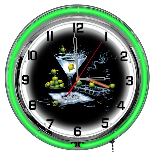 As a true masterpiece of form and function, the Olive Party II Neon Clock is the perfect fusion of art and utility. Its sleek, modern design complements any décor, from contemporary to traditional, and its compact 18-inch size makes it suitable for display in even the coziest of spaces. Imagine the envy of friends and family as they gather 'round to marvel at this extraordinary timepiece, its radiant glow illuminating the room with an aura of sophistication and glamour.