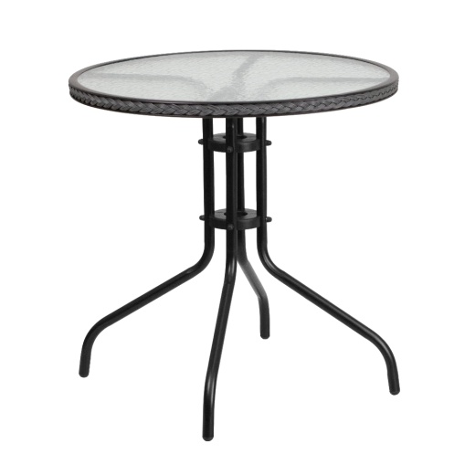 Whether you need to add more seating space or create an intimate conversation area, this versatile round tempered glass top table is up to the task. Enhance the look of your bistro, cafe, restaurant, hotel or home patio space without taking up too much real estate. The ripple designed table top features a smooth surface for keeping items level. A black powder coat finish lends the round-shaped table a bold, versatile appearance that matches well with your favorite chairs. Designed for all-weather use, this table is a great option for indoor and outdoor settings. For longevity, care should be taken to protect from long periods of wet weather. Whether you are just starting your business or upgrading your furniture this table is a wise investment.