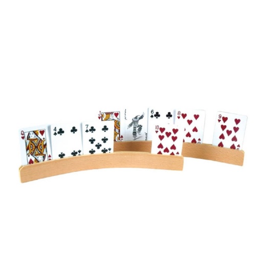 2 piece curved shape wooden card holders. We have variety of different playing cards and accessories. Playing cards from miniature to jumbo size, with paper and plastic coated or 100% plastic.