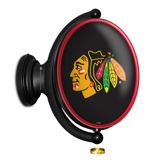 The Original Chicago Blackhawks Rotating Illuminated Wall Sign both lights up and spins while displaying your team pride for the Blackhawks. Whether it's your fan cave, office, game room, garage, or dorm, this decorative sign is the perfect addition to any wall. It showcases the latest in LED technology and only uses 12 watts of power. Injection molded, it comes with an 8 power cord and a metal pull chain. Mounting hardware included and installation takes no more than 10 minutes. This is an officially licensed product of NHL and made in the USA.