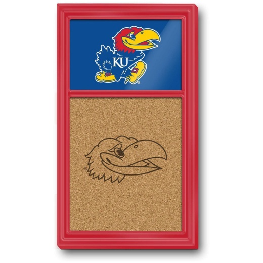The University of Kansas Cork Note Board is perfect for keeping notes and pinning messages or photos in any fan cave, game room, office or dorm. Our note board wall sign is injection molded with it's high-resolution digitally printed face, high gloss finish, and corkboard surface, it will provide hours of use while adding a finishing touch to any room. Mounting hardware included. This is an officially licensed product of the Jayhawks and made in the USA.