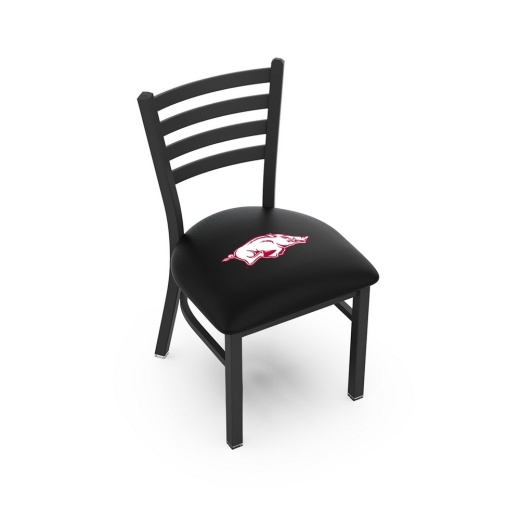 The L004 Logo Jackie 1 stationary chair delivers commercial-grade durability with bold fan style. Designed at a standard 18-inch dining height and featuring a classic ladder back, this logo ladder back chair provides dependable seating for dining rooms, game rooms, and commercial spaces. The frame is constructed from 16-gauge, 1.25-inch steel and reinforced with solid MIG welded joints to ensure long-term strength. A black wrinkle powder coat finish resists chips, scratches, and rust, helping the chair maintain its appearance in active environments. Independently load tested to 750 pounds without failure and meeting ANSI/BIFMA commercial seating standards, the Jackie 1 is built for dependable daily use. The 2.5-inch seat cushion uses high-density foam that holds its shape while delivering lasting comfort. The commercial-grade vinyl seat features an officially licensed logo applied with a UV-cured, first-surface print process to maintain crisp detail and vibrant color over time. Built to order and made to last, the L004 Logo Jackie 1 stationary logo ladder back chair combines reliable performance, comfortable seating, and authentic team pride in one durable design.