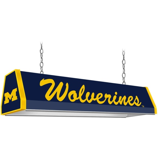 Our University of Michigan standard pool table light is the perfect way to put that finishing touch on any fan cave or billiard room while showing your school pride. Injection molded and features a high resolution image with a high gloss finish and metallic trim. Hanging hardware included. This is an officially licensed product of the Wolverines and made in the USA.