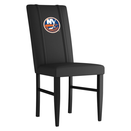 Enjoy the New York Islanders Side Chair 2000 at the dinner table, poker table, or any other table you are sitting at. The perfect addition to your New York Islanders "fan cave" the side chair incorporates contemporary styling with sturdy 18 gauge powder coated steel frame providing a chair that not only looks great but is commercially rated to last. Best of all the logos zip on and off for endless customization and you can add a second logo to the back of the chair!