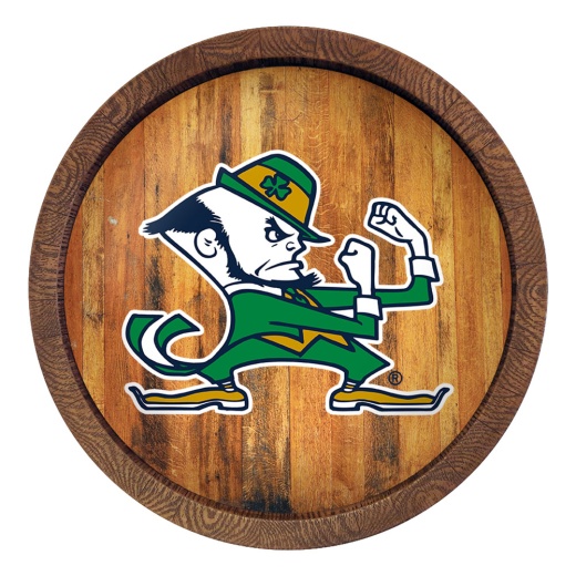 Our University of Notre Dame Barrel Top Wall Sign is an affordable, durable, and easy to hang option for those who have always wanted a barrel top sign. This product is injection molded and hand stained to give it an authentic wood look. It is printed with automotive grade UV stable inks and given a high gloss finish. Bring the rustic look indoors with this great piece of wall decor that will bring style to any room of the home or office. This is an officially licensed product of the Fighting Irish and made in the USA.