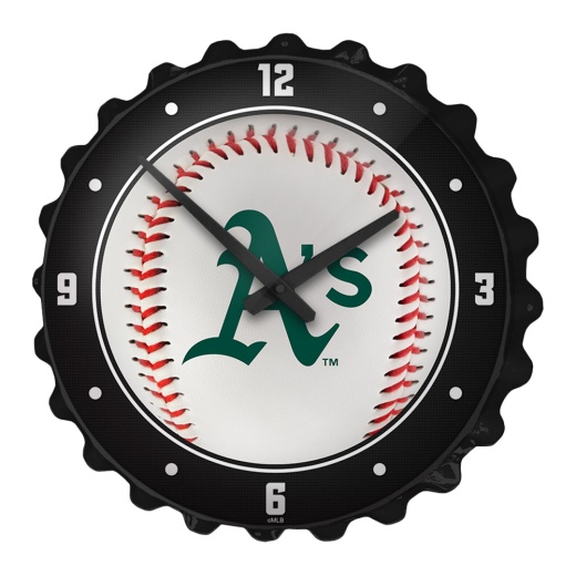 This Oakland Athletics large-scale replica bottle cap wall clock is sure to attract some attention. its a great addition to any fan cave, game room, garage, or home office. Our bottle cap wall clock is injection molded with a high-resolution, digitally printed face that is given a high gloss finish. This is an officially licensed product of Major League Baseball and the Oakland and made in the USA.