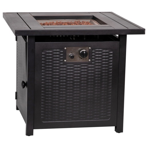 Entertain friends and family or spend some quality time with your significant other around this patio fire pit table. Push button ignition along with high and low settings produce up to 50,000 BTU's to heat up to 32 square feet to keep you warm and toasty. This fire table is powered by a standard 20 lb. propane tank (not included) that will be tucked away and secured in the hideaway tank holder to keep your decorating aesthetic intact. The stainless steel table top will hold the included lava rocks for a roaring fire but can become a table when the unit is not in use with the included lid. Assembly takes less than 60 minutes and cleanup is quick and easy with a damp cloth. Adjustable floor glides provide a level surface so the fire burns evenly and the AAA battery for the igniter is included. [YO-GYM80015-BK-GG]