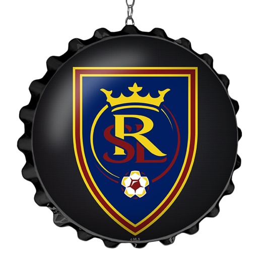 This double-sided Real Salt Lake large-scale bottle cap replica is injection molded and features a high resolution digitally printed face with a high gloss finish on both sides. Hang this from the ceiling of any room and watch it immediately draw attention and give your fan cave, bedroom, or dorm room that finishing touch. This is an officially licensed product of RSL and made in the USA.