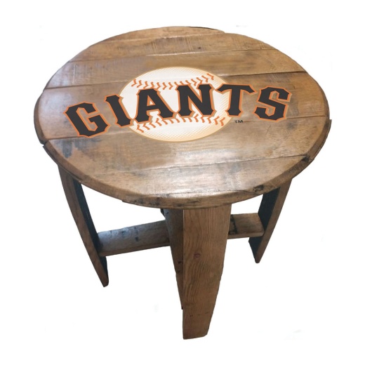 Liven up your living room or fan cave with this offically licensed SAN FRANCISCO GIANTS Custom Made Oak Barrel Table from Imperial! Made from an authentic Kentucky oak charred whiskey barrel, this rustic-style table is one of a kind and looks great in any room. The team logo is applied by injecting UV resistant ink into the oak and then sealing. The table measures 21 inches in diameter and is 24 inches high. This product is officially licensed by the MLB and is made in the USA.