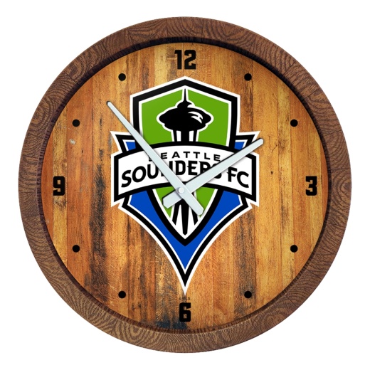 Our Seattle Sounders Barrel Top Wall Clock is an affordable, durable, and easy to hang option for those who have always wanted a barrel top sign. This product is injection molded and hand stained to give it an authentic wood look. It is printed with automotive grade UV stable inks and given a high gloss finish. Bring the rustic look indoors with this great piece of wall decor that will bring style and functionality to any room of the home or office. This is an officially licensed product of the Sounders and made in the USA.