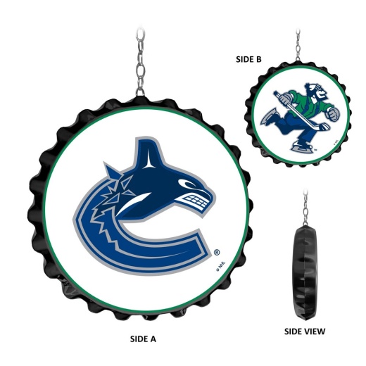 This double-sided Vancouver Canucks large-scale bottle cap replica is injection molded and features a high resolution digitally printed face with a high gloss finish on both sides. Hang this from the ceiling of any room and watch it immediately draw attention and give your fan cave, bedroom, or garage that finishing touch. This is an officially licensed product of NHL and made in the USA.