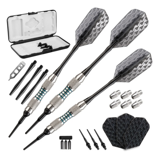 Experiment with new weights with the Viper Bobcat Adjustable Soft Tip Darts. These unique darts use an adjustable add-a-gram system so their weight can be adjusted between 16, 17, or 18 grams. When playing without a weight on, these darts will weigh 16 grams and use 1/4 dart tips (not included). Depending on the add-a-gram set you use, the darts will weigh either 17 or 18 grams and use 2BA dart tips. This soft tip dart set comes with three fully assembled darts, a dart wrench, 6 add-a-grams, three extra 2BA tips, three flight protectors, three nylon shafts, three extra flights, and a deluxe dart pal case that can hold everything included.