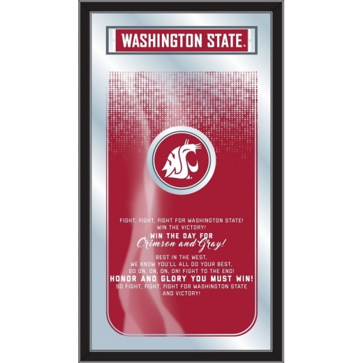 The Officially Licensed Fight Song Wall Mirror highlights the words that define game day tradition. Whether featuring a classic fight song lyric or a bold rally chant, this design captures the spirit and pride fans display at every event. Built for game rooms, bars, offices, and fan spaces, the mirror combines meaningful team expression with durable construction. It features 1/8-inch thick real glass for a sharp, distortion-free reflection. Graphics are digitally printed using UV-cured ink to produce crisp detail and long-lasting, fade-resistant color. A 1.25-inch wide matte black frame provides a clean, modern finish suitable for a variety of interiors. Measuring 15 inches wide by 26 inches high, this mirror is designed for vertical display and includes pre-installed saw-tooth hanging hardware for secure wall mounting. Each unit ships in a custom protective carton with engineered interior packing to help ensure safe delivery. Officially licensed designs are available, with custom imprinting options offered.