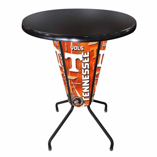 The Tennessee Volunteers Holland Bar Stools LightEDecor furniture is unlike anything else on the market. The black wrinkle table frame is constructed of commercial grade, electro-coated steel along and self-leveling glides. The commercial quality top requires minimal maintenance, a simple wiping with a wet cloth or a mild detergent is all that is needed to remove signs of spills, burns, or stains, whether from liquids, solid foods, or corrosive or sticky substances. Resistant against all types of weather conditions and UV rays, the table top is weather proof, impact resistant, and is scratch resistant. All of this, and it is also environmentally friendly, as table tops are made from sustainable harvested materials. Now comes the fun part, the interchangeable graphic panels. Each table features four interchangeable licensed logo, custom, or standard design panels. These panels are produced from durable lexan and are digitally printed with UV inks for crystal clear, vibrant graphics. Behind all this is a rechargeable LED light unit that is controlled by an IR remote control. The light will last up to 12 hrs on a single charge! The remote control allows you to brighten, dim, and switch between the 16 different static color options, or choose any of the 4 transitional settings (Flash, Strobe, Fade, and Smooth) and watch the colors rotate. If you are looking for something unique to spice up your porch, deck, patio, or even your man cave look no further than this all-weather indoor/outdoor lighted table from the Holland Bar Stool Co.