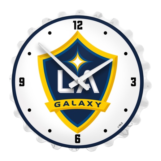 This LA Galaxy large-scale replica bottle cap lighted wall clock is sure to attract some attention. It's a great addition to any fan cave, game room, garage, or home office. Our lighted bottle cap wall clock is injection molded with a high-resolution, digitally printed face that is given a high gloss finish. It is illuminated with the latest in LED technology and only uses 12 volts of power. It comes with a 6-foot power cord and an in-line switch. This is an officially licensed product of the Galaxy and made in the USA.