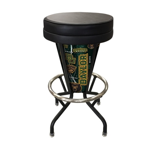 The Baylor University Bears Holland Bar Stool Co.'s LightEDecor furniture is unlike anything else on the market. The black wrinkle stool frame is constructed of commercial grade, electro-coated steel along with a 304 stainless steel foot ring and self-leveling glides. The seat is an impressive 16 diameter with 2 thick, dense foam that is covered by a marine grade black vinyl for superior comfort and durability. The lifetime warrantied, marine swivel utilizes 52 stainless steel ball bearings for smooth, easy movement. Now comes the fun part, the interchangeable graphic panels. Each stool features four interchangeable licensed logo, custom, or standard design panels. These panels are produced from durable lexan and are digitally printed with UV inks for crystal clear, vibrant graphics. Behind all this is a rechargeable LED light unit that is controlled by an IR remote control. The light will last up to 12 hrs on a single charge! The remote control allows you to brighten, dim, and switch between the 16 different static color options, or choose any of the 4 transitional settings (Flash, Strobe, Fade, and Smooth) and watch the colors rotate. If you are looking for something unique to spice up your porch, deck, patio, or even your man cave look no further than this all-weather indoor/outdoor lighted stool from the Holland Bar Stool Co.
