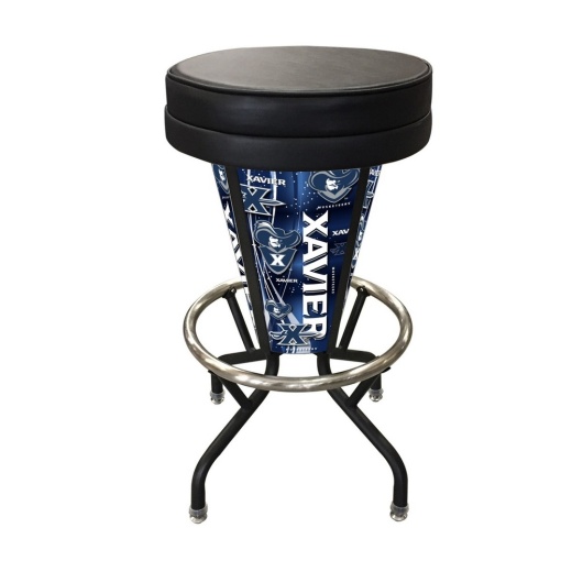 The Xavier University Holland Bar Stool Co.'s LightEDecor furniture is unlike anything else on the market. The black wrinkle stool frame is constructed of commercial grade, electro-coated steel along with a 304 stainless steel foot ring and self-leveling glides. The seat is an impressive 16 diameter with 2 thick, dense foam that is covered by a marine grade black vinyl for superior comfort and durability. The lifetime warrantied, marine swivel utilizes 52 stainless steel ball bearings for smooth, easy movement. Now comes the fun part, the interchangeable graphic panels. Each stool features four interchangeable licensed logo, custom, or standard design panels. These panels are produced from durable lexan and are digitally printed with UV inks for crystal clear, vibrant graphics. Behind all this is a rechargeable LED light unit that is controlled by an IR remote control. The light will last up to 12 hrs on a single charge! The remote control allows you to brighten, dim, and switch between the 16 different static color options, or choose any of the 4 transitional settings (Flash, Strobe, Fade, and Smooth) and watch the colors rotate. If you are looking for something unique to spice up your porch, deck, patio, or even your man cave look no further than this all-weather indoor/outdoor lighted stool from the Holland Bar Stool Co.