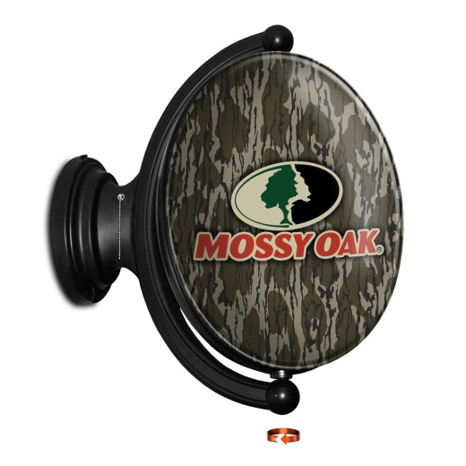 The Original Mossy Oak Bottomland Oval Rotating Lighted Wall Sign both lights up and spins while allowing you to displaying your passion for the outdoors. Whether it's your fan cave, cabin, game room, garage, or even duck blind, this decorative sign is the perfect addition to any wall. It showcases the latest in LED technology and only uses 12 watts of power. Injection molded, it comes with an 8' power cord and a metal pull chain. Mounting hardware included and installation takes no more than 10 minutes. This is an officially licensed product of Mossy Oak and made in the USA.