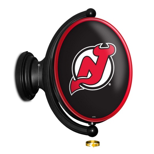 The Original New Jersey Devils Rotating Illuminated Wall Sign both lights up and spins while displaying your team pride for the Devils. Whether it's your fan cave, office, game room, garage, or dorm, this decorative sign is the perfect addition to any wall. It showcases the latest in LED technology and only uses 12 watts of power. Injection molded, it comes with an 8 power cord and a metal pull chain. Mounting hardware included and installation takes no more than 10 minutes. This is an officially licensed product of NHL and made in the USA.