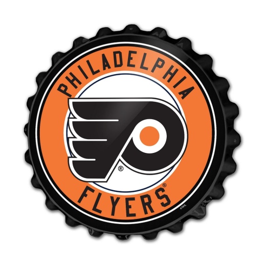 This Philadelphia Flyers large-scale replica bottle cap wall sign is sure to attract some attention. It is injection molded and features a high resolution digitally printed face with a high gloss finish. Its large size will show your pride for the Flyers and add immediate color and appeal to any room of the home or office. This is an officially licensed product of NHL and made in the USA.