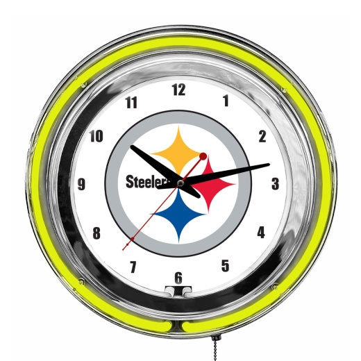 Make Your Fan Room Or Office Glow With Your 14" Pittsburgh Steelers Neon Clock. Inner Band Of Neon Is White To Brighten The Face Of The Clock And Outer Band Focuses On Your Favorite Teams Color. Perfect Gift For That Distinguished Fan!