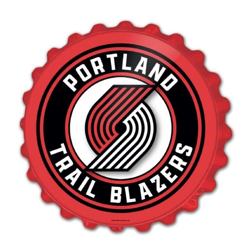 This Portland Trail Blazers large-scale replica bottle cap wall sign is sure to attract some attention. It is injection molded and features a high-resolution digitally printed face with a high gloss finish. Its large size will show your pride for the Trail Blazers and add immediate color and appeal to any room of the home or office. This is an officially licensed product of NBA and made in the USA.