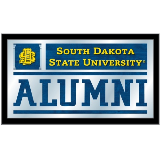 Show your school pride with an South Dakota State University Logo Alumni mirror from the Holland Bar Stool Co. With it's simple but elegant design, your school colors burst through the 1/8" thick glass and are highlighted by the mirrored accents. Framed with a black, 1 1/4 wrapped wood frame with saw tooth hangers, this 26"(H) x 15"(W) mirror is ideal for your office, garage, or any room of the house. Whether purchasing as a gift for a recent grad, or for yourself, you can take satisfaction knowing you're buying a mirror that is proudly Made in the USA by Holland Bar Stool Company, Holland, MI.