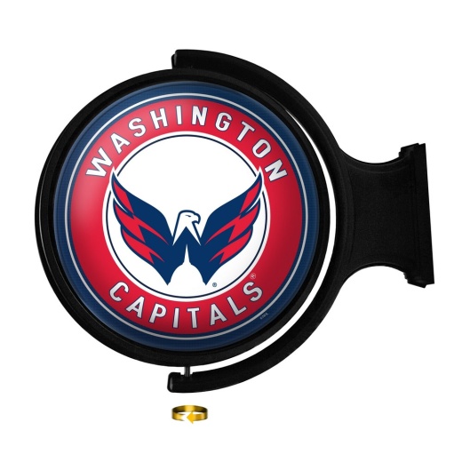 The Original Washington Capitals Rotating Illuminated Wall Sign both lights up and spins while displaying your team pride for the Capitals. Whether it's your fan cave, office, game room, garage, or dorm, this decorative sign is the perfect addition to any wall. It showcases the latest in LED technology and only uses 12 watts of power. Injection molded, it comes with an 8 power cord and a metal pull chain. Mounting hardware included and installation takes no more than 10 minutes. This is an officially licensed product of NHL and made in the USA.