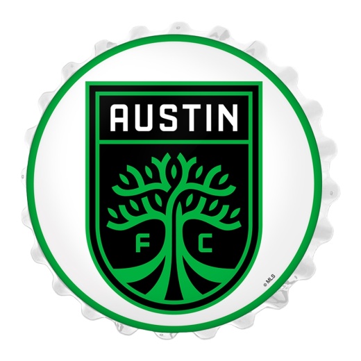 This Austin F.C. large-scale replica bottle cap wall light is sure to attract some attention. It is injection molded and features a high resolution digitally printed face with a high gloss finish. Its large size will show your pride for Austin F.C. and add immediate color and appeal to any room of the home or office. Our Bottle Cap Light is illuminated with the latest in LED technology and only uses 12 volts. It comes with a 6-foot power cord and an in-line switch. This is an officially licensed product of Austin and made in the USA.
