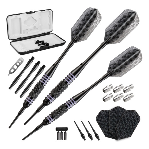 Experiment with new weights with the Viper Bobcat Adjustable Soft Tip Darts. These unique darts use an adjustable add-a-gram system so their weight can be adjusted between 16, 17, or 18 grams. When playing without a weight on, these darts will weigh 16 grams and use 1/4 dart tips (not included). Depending on the add-a-gram set you use, the darts will weigh either 17 or 18 grams and use 2BA dart tips. This soft tip dart set comes with three fully assembled darts, a dart wrench, 6 add-a-grams, three extra 2BA tips, three flight protectors, three nylon shafts, three extra flights, and a deluxe dart pal case that can hold everything included.