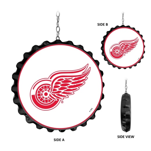 This double-sided Detroit Red Wings large-scale bottle cap replica is injection molded and features a high resolution digitally printed face with a high gloss finish on both sides. Hang this from the ceiling of any room and watch it immediately draw attention and give your fan cave, bedroom, or garage that finishing touch. This is an officially licensed product of NHL and made in the USA.