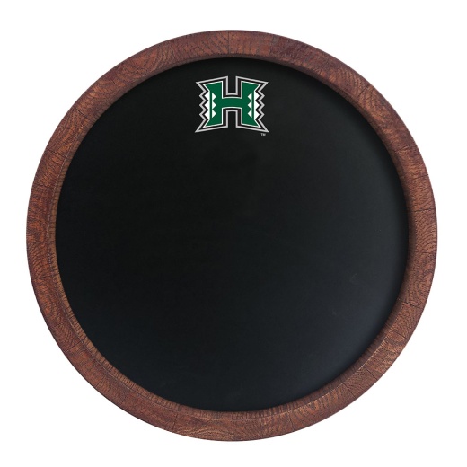 Bring the rustic look indoors with our University of Hawaii Barrel Top Chalkboard. Showcase your team spirit with this great piece that also functions as a real chalkboard to write on and leave messages for your family and guests. This product is injection molded and hand stained to give it an authentic wood look. This is an officially licensed product of the Warriors and made in the USA.