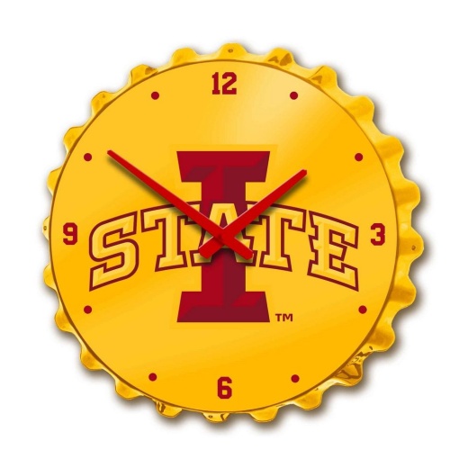 This Iowa State University large-scale replica bottle cap wall clock is sure to attract some attention. It's a great addition to any fan cave, game room, garage, or home office. Our bottle cap wall clock is injection molded with a high-resolution, digitally printed face that is given a high gloss finish. This is an officially licensed product of Iowa State and made in the USA.