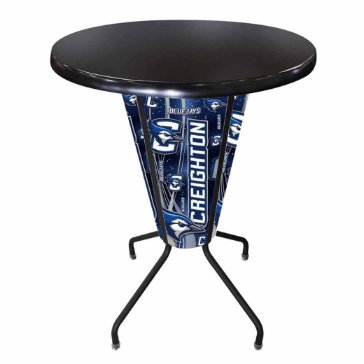 The Creighton University Holland Bar Stools LightEDecor furniture is unlike anything else on the market. The black wrinkle table frame is constructed of commercial grade, electro-coated steel along and self-leveling glides. The commercial quality top requires minimal maintenance, a simple wiping with a wet cloth or a mild detergent is all that is needed to remove signs of spills, burns, or stains, whether from liquids, solid foods, or corrosive or sticky substances. Resistant against all types of weather conditions and UV rays, the table top is weather proof, impact resistant, and is scratch resistant. All of this, and it is also environmentally friendly, as table tops are made from sustainable harvested materials. Now comes the fun part, the interchangeable graphic panels. Each table features four interchangeable licensed logo, custom, or standard design panels. These panels are produced from durable lexan and are digitally printed with UV inks for crystal clear, vibrant graphics. Behind all this is a rechargeable LED light unit that is controlled by an IR remote control. The light will last up to 12 hrs on a single charge! The remote control allows you to brighten, dim, and switch between the 16 different static color options, or choose any of the 4 transitional settings (Flash, Strobe, Fade, and Smooth) and watch the colors rotate. If you are looking for something unique to spice up your porch, deck, patio, or even your man cave look no further than this all-weather indoor/outdoor lighted table from the Holland Bar Stool Co.