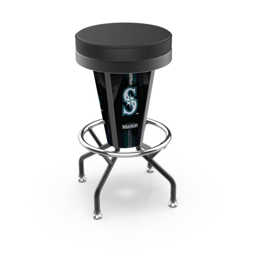 The Seattle Mariners Holland Bar Stool Co.'s LightEDecor furniture is unlike anything else on the market. The black wrinkle stool frame is constructed of commercial grade, electro-coated steel along with a 304 stainless steel foot ring and self-leveling glides. The seat is an impressive 16 diameter with 2 thick, dense foam that is covered by a marine grade black vinyl for superior comfort and durability. The lifetime warrantied, marine swivel utilizes 52 stainless steel ball bearings for smooth, easy movement. Now comes the fun part, the interchangeable graphic panels. Each stool features four interchangeable licensed logo, custom, or standard design panels. These panels are produced from durable lexan and are digitally printed with UV inks for crystal clear, vibrant graphics. Behind all this is a rechargeable LED light unit that is controlled by an IR remote control. The light will last up to 12 hrs on a single charge! The remote control allows you to brighten, dim, and switch between the 16 different static color options, or choose any of the 4 transitional settings (Flash, Strobe, Fade, and Smooth) and watch the colors rotate. If you are looking for something unique to spice up your porch, deck, patio, or even your man cave look no further than this all-weather indoor/outdoor lighted stool from the Holland Bar Stool Co.