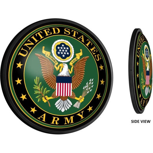 The Slimline United States Army Lighted Wall Sign is the perfect modern styled sign for any wall. Whether it's your fan cave, office, game room, or garage, this decorative light is the perfect way to show yourdedication to the US Army. Its high resolution digitally printed face provides a photographic quality image with a high gloss finish. It is illuminated with the latest in LED technology and only uses 12 volts. It comes with a 6 power cord and an in-line switch. Mounting hardware included. This is an officially licensed product of the US Army and made in the USA.