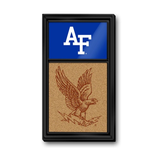 The United States Air Force Academy Cork Note Board is perfect for keeping notes and pinning messages or photos in any fan cave, game room, office or dorm. Our note board wall sign is injection molded with it's high-resolution digitally printed face, high gloss finish, and corkboard surface, it will provide hours of use while adding a finishing touch to any room. Mounting hardware included. This is an officially licensed product of the Air Force Academy and made in the USA.