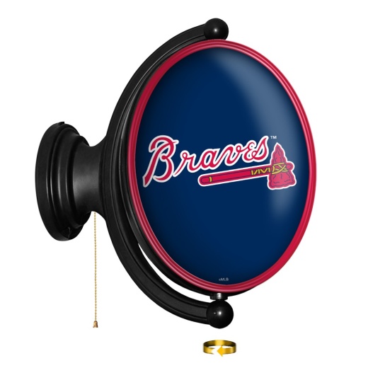The Original Atlanta Braves Rotating Lighted Wall Sign both lights up and spins while allowing you to display your passion for the Braves. Whether its your fan cave, office, game room, or garage, this decorative sign is the perfect addition to any wall. It showcases the latest in LED technology and only uses 12 watts of power. Injection molded, it comes with an 8-foot power cord and a metal pull chain. Mounting hardware included and installation takes no more than 10 minutes. This is an officially licensed product of the Braves and made in the USA.