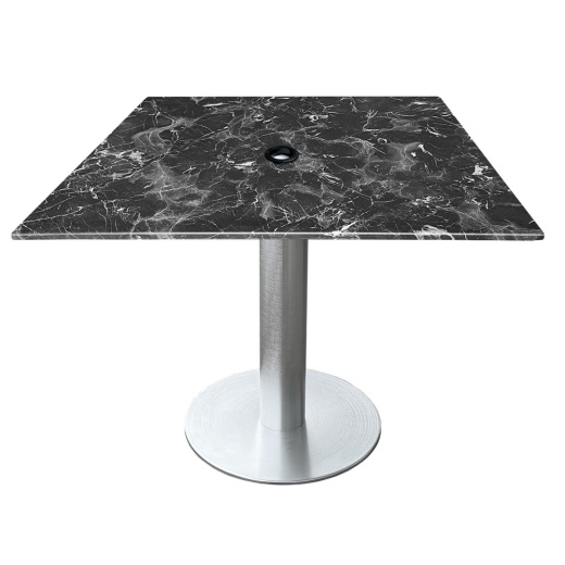 With uncompromising quality, durability, and attention to detail, our commercial grade outdoor tables are the perfect option for commercial and residential settings. The commercial quality EuroSlim table top requires minimal maintenance, a simple wiping with a wet cloth or a mild detergent is all that is needed to remove signs of spills, burns, or stains, whether from liquids, solid foods, or corrosive or sticky substances. Resistant against all types of weather conditions and UV rays, the EuroSlim table tops are weather proof, impact resistant, and scratch resistant. The EuroSlim line of table tops are also environmentally friendly, they are made from sustainable harvested materials. The OD219 table base features a 4 high-grade aluminum column, 18 round aluminum clad cast iron base, and electrocoated steel spider top plate to ensure excellent, all-weather performance. The brushed aluminum finish is sophisticated and provides a strong and beautiful appearance. The base can house up to a 2 diameter umbrella pole, and adjustable feet accommodate and protect a variety of floor surfaces.