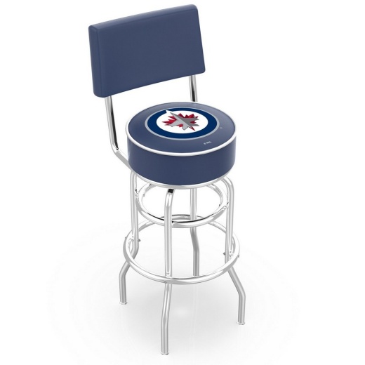 Made for the ultimate sports fan, you will be proud to show where your loyalty lies with this impressive Officially Licensed Winnipeg Jets stool from the Holland Bar Stool Co. This retro L7C4 stool has a 5" cushion with a classic double-ring base and a cushioned back to achieve maximum comfort and support. A state of the art print process is used in applying specially formulated UV vinyl ink in numerous stages to produce a sharp, crisp, clear image to ensure a perfect reproduction of the logo. You won't find a higher quality logo stool on the market. The frame is made from commercial grade steel that is strong, durable, and triple chrome-plated to guarantee a long-lasting, rich finish capable of withstanding the abuse of your rowdiest of friends for years to come. The cushion seat and backs are of the highest quality as well, utilizing a breathable, commercial grade vinyl. At the heart of the cushion is highly-dense, US made foam that provides maximum support and will not breakdown in a couple years. If you're going to finish your bar, game room, or man cave do it right- with a logo stool made in the USA by the Holland Bar Stool Co.