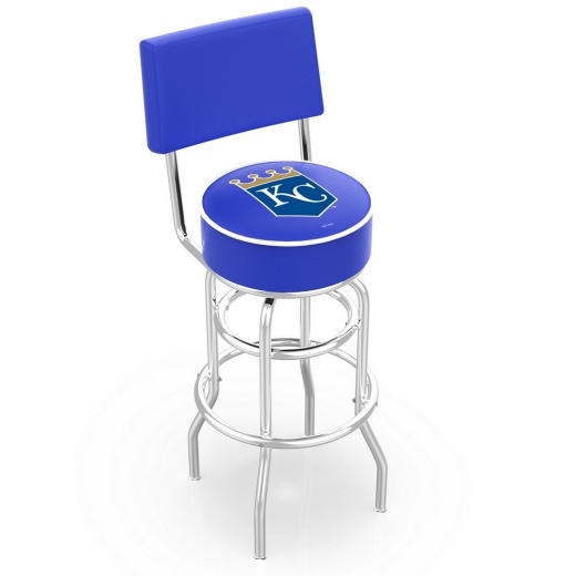 Made for the ultimate sports fan, you will be proud to show where your loyalty lies with this impressive Officially Licensed Kansas City Royals stool from the Holland Bar Stool Co. This retro L7C4 stool has a 5" cushion with a classic doubleing base and a cushioned back to achieve maximum comfort and support. A state of the art print process is used in applying specially formulated UV vinyl ink in numerous stages to produce a sharp, crisp, clear image to ensure a perfect reproduction of the logo. You won't find a higher quality logo stool on the market. The frame is made from commercial grade steel that is strong, durable, and triple chrome-plated to guarantee a long-lasting, rich finish capable of withstanding the abuse of your rowdiest of friends for years to come. The cushion seat and backs are of the highest quality as well, utilizing a breathable, commercial grade vinyl. At the heart of the cushion is highly-dense, US made foam that provides maximum support and will not breakdown in a couple years. If you're going to finish your bar, game room, or man cave do it right- with a logo stool made in the USA by the Holland Bar Stool Co.