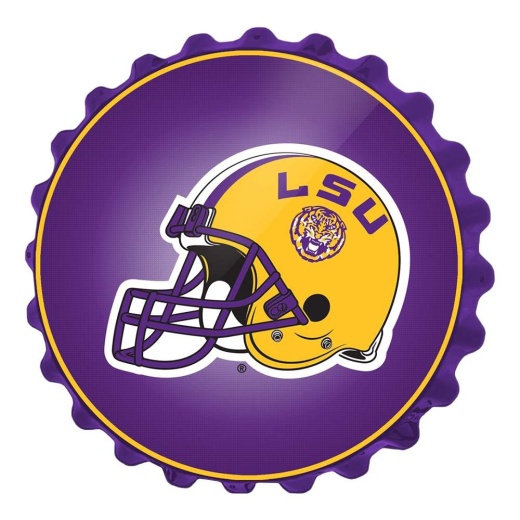 This Louisiana State University large-scale replica bottle cap wall sign is sure to attract some attention. It is injection molded and features a high resolution digitally printed face with a high gloss finish. Its large size will show your pride for the Tigers and add immediate color and appeal to any room of the home or office. This is an officially licensed product of LSU and made in the USA.