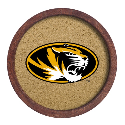With its rustic design, our University of Missouri "Faux" Barrel Framed Cork Board is perfect for pinning messages, photos, or keeping notes in any fan cave, game room, office, or dorm. The high definition, digitally printed logo is produced with UV stable inks that provide a clean and vibrant image. Its injection molded, hand-stained frame provides an authentic wood look. Its an affordable and durable option for those who have always wanted the look of a barrel sign. These cork bulletin boards are officially licensed by the Tigers and made in the USA.