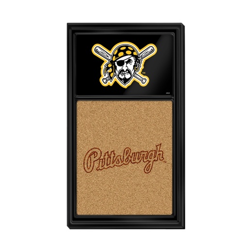 The Pittsburgh Pirates Cork Note Board is perfect for keeping notes and pinning messages or photos in any fan cave, game room, office or dorm. Our cork note board wall sign is injection molded with its high-resolution digitally printed face, high gloss finish, and cork surface, it will provide hours of use while adding a finishing touch to any room. Mounting hardware included. This is an officially licensed product of Major League Baseball and the Pirates and made in the USA.