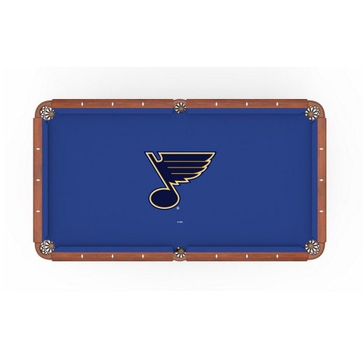 Looking to set your pool table apart from the others? Look no further than a St. Louis Blues logo billiard cloth from the Holland Bar Stool Co. Manufactured by Hainsworth of England, they start with their renown Worsted cloth and the logo is dyed into the cloth resulting in a perfectly smooth, even play surface with no effect to ball play. Having a worsted cloth means it is woven with yarn that is combed to remove the short fibers, making the cloth smoother which results in balls running faster with much more consistent speed. Worsted cloth is more durable and will not compress to form gullies on the table. Hainsworth worsted cloth stands apart from other cloths on the market because it incorporates: finer yarn meaning greater thread count per inch; quality dye chemicals that coat the fibers better and are less likely to fade; extensive finishing to remove loose fibers to ensure the smoothest, flattest surface, increasing ball speed and consistancy; durability, stretch and quality of fiber checked at every stage of the manufacturing; state of the art modern manufacturing machinery to guarantee quality and construction of the cloth. If you are looking to cover your new table or put new life into an existing table, look no further than the Hainsworth logo cloth offered by the Holland Bar Stool Co. Cloth sets come with enough material to cover rails and bed.