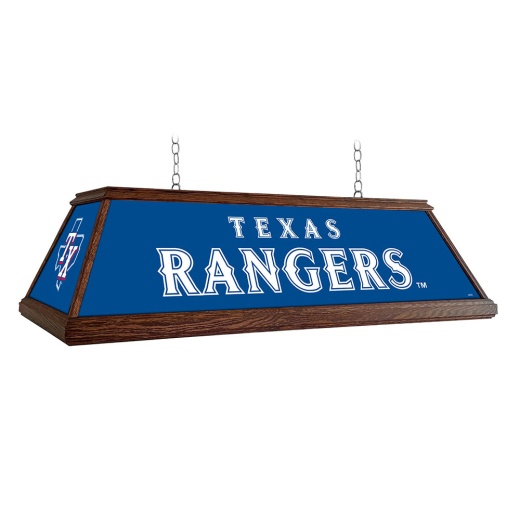 Our premium deluxe Texas Rangers wood pool table light will be sure to be the centerpiece of any billiard room or fan cave. Hand crafted and hand stained with real oak wood and featuring a high-resolution, high gloss panels. Hanging hardware included. This is an officially licensed product of Major League Baseball and the Rangers and made in the USA.