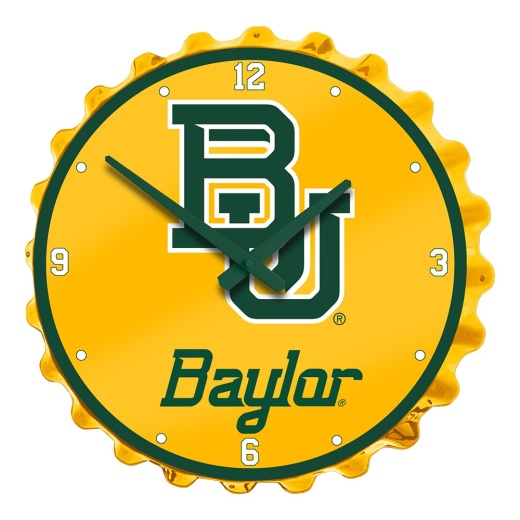 This Baylor University large-scale replica bottle cap wall clock is sure to attract some attention. It's a great addition to any fan cave, game room, garage, or home office. Our bottle cap wall clock is injection molded with a high-resolution, digitally printed face that is given a high gloss finish. This is an officially licensed product of Baylor and made in the USA.