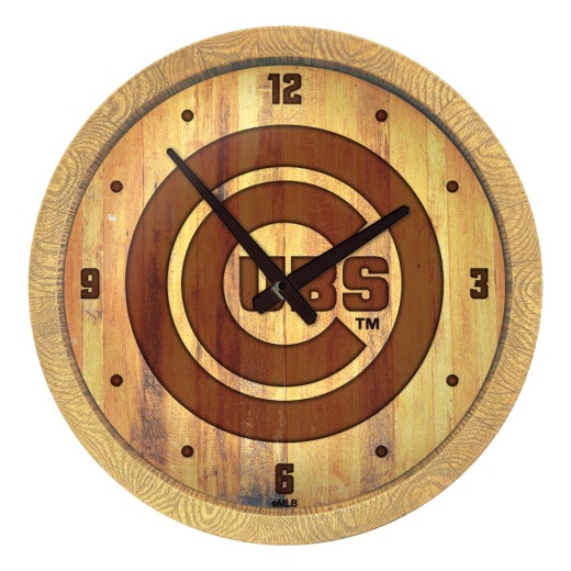 Our Chicago Cubs Barrel Top Wall Clock is an affordable, durable, and easy to hang option for those who have always wanted a barrel top sign. This product is injection molded and hand stained to give it an authentic wood look. It is printed with automotive grade UV stable inks and given a high gloss finish. Bring the rustic look indoors with this great piece of wall decor that will bring style and functionality to any room of the home or office. This is an officially licensed product of the Cubs and made in the USA.