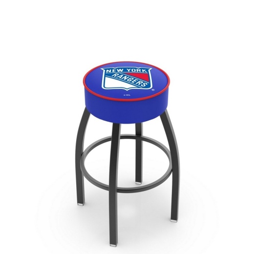 Made for the ultimate sports fan, you will be proud to show where your loyalty lies with this impressive Officially Licensed New York Rangers stool from the Holland Bar Stool Co. This contemporary L8B1 stool features a single-ring black wrinkle base with a 5" scooped cushion that conceals the swivel for an exceptionally clean look. A state of the art print process is used in applying specially formulated UV vinyl ink in numerous stages to produce a sharp, crisp, clear image to ensure a perfect reproduction of the logo. You won't find a higher quality logo stool on the market. The frame is made from commercial quality 16 gauge, 1 1/4 inch tube steel with solid mig welded joints to guarantee strength and durability. The powder coated finish resists chips and scratches and ensures a long-lasting, rich appearance. The cushion seats are of the highest quality as well, utilizing a breathable, commercial grade vinyl. At the heart of the cushion is highly-dense, US made foam that provides maximum support and will not breakdown in a couple years. If you're going to finish your bar, game room, or man cave do it right- with a logo stool made in the USA by the Holland Bar Stool Co.
